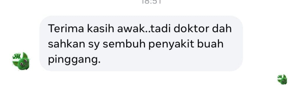 *PENAFIAN: Keberkesanan produk ini bergantung kepada kesesuaian individu. Setiap hasil dari penggunaan adalah berbeza bagi setiap individu. Produk ini akan memberi kesan terbaik sekiranya pengguna mengamalkan dengan cara betul berdasarkan banyak testimoni yang diperolehi. Kita berikhtiar, tuhan yang menyembuhkan.