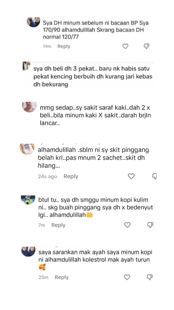 Disclaimer: Testimonials found at https://kopikulim.shop/ and/or from Kopi Kulim are unverified results that have been forwarded to us by users of the product. The results may vary for each individual and are not intended to represent or guarantee that anyone will achieve the same or similar results within a specific period of time.